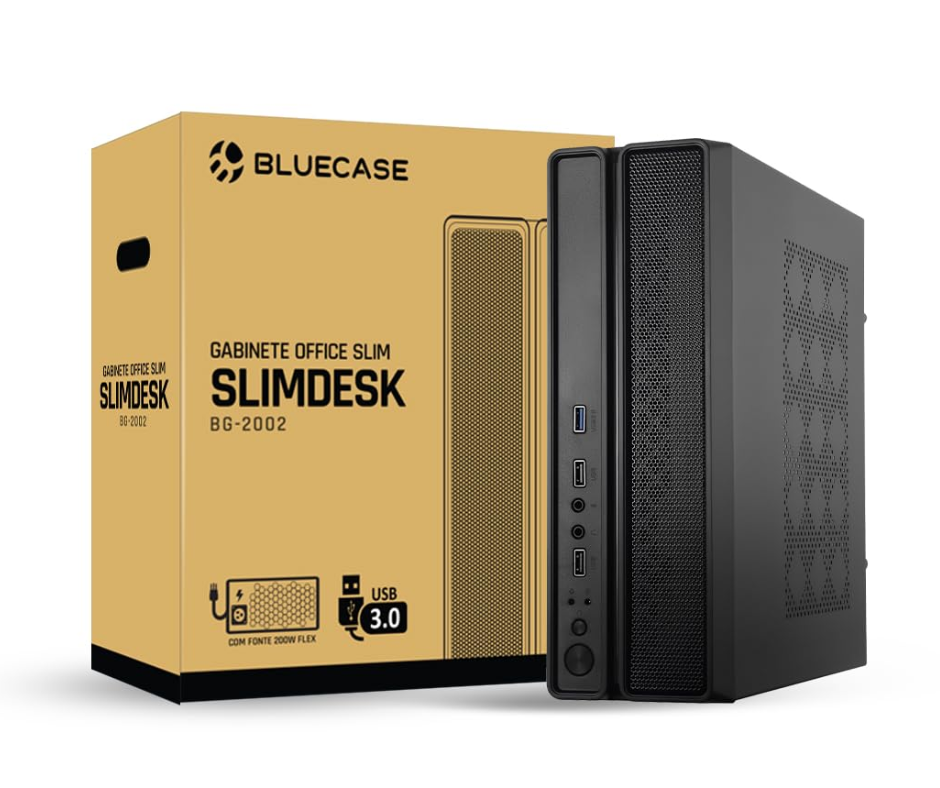 Com seu design Slim de 290 x 95 x 300mm, o Slimdesk é ideal para quem busca reduzir o espaço ocupado por um computador convencional.